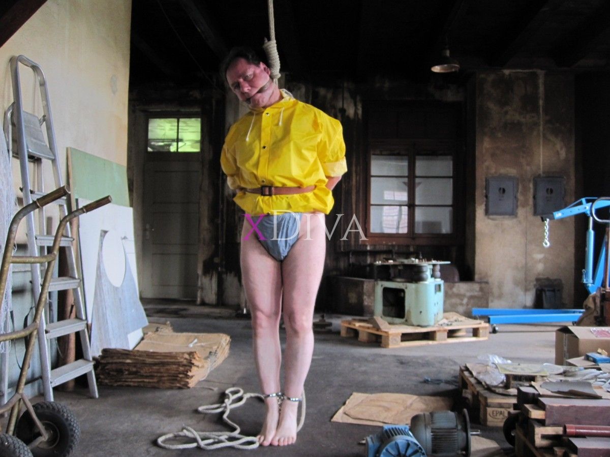 Als Euer Gefangener in meiner PVC, Plastikkleidung, gefesselt, auch hängen, kann man mit mir einige Dinge anstellen!
